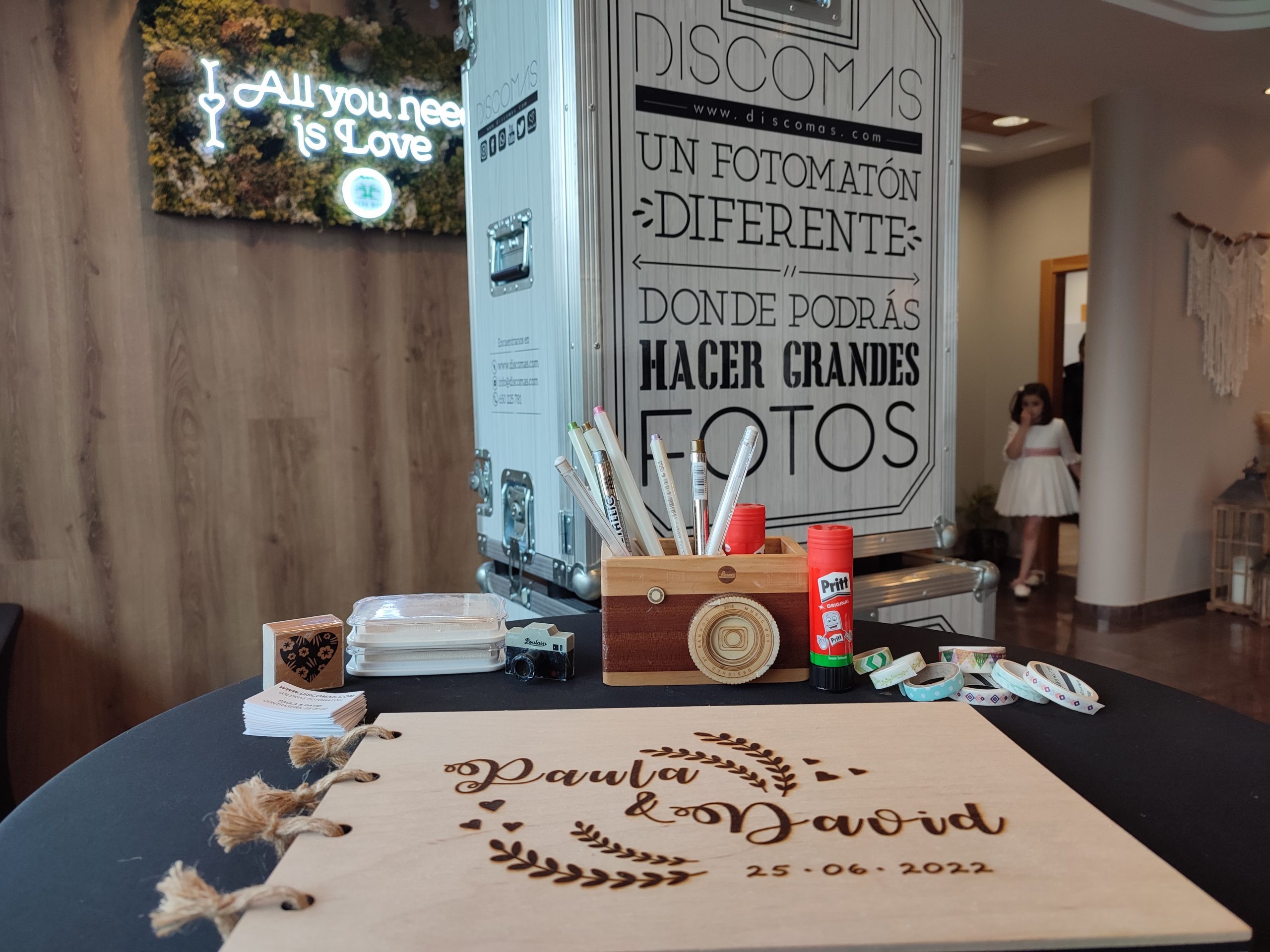 - Libro de Firmas Personalizado con Nombres y Fecha de la boda.